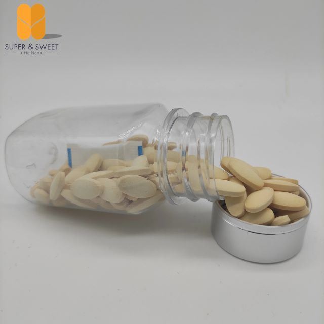 المادة الخام:أقراص غذاء ملكات النحل هي غذاء ملكات النحل الطازج الذي تمت معالجته بالتجميد في منشأتنا الحديثة، ثم يتم طحنه وخلطه وفقًا لمعايير الجودة لدينا.
